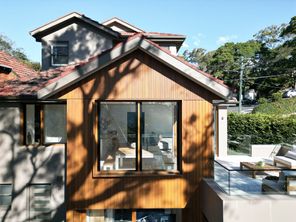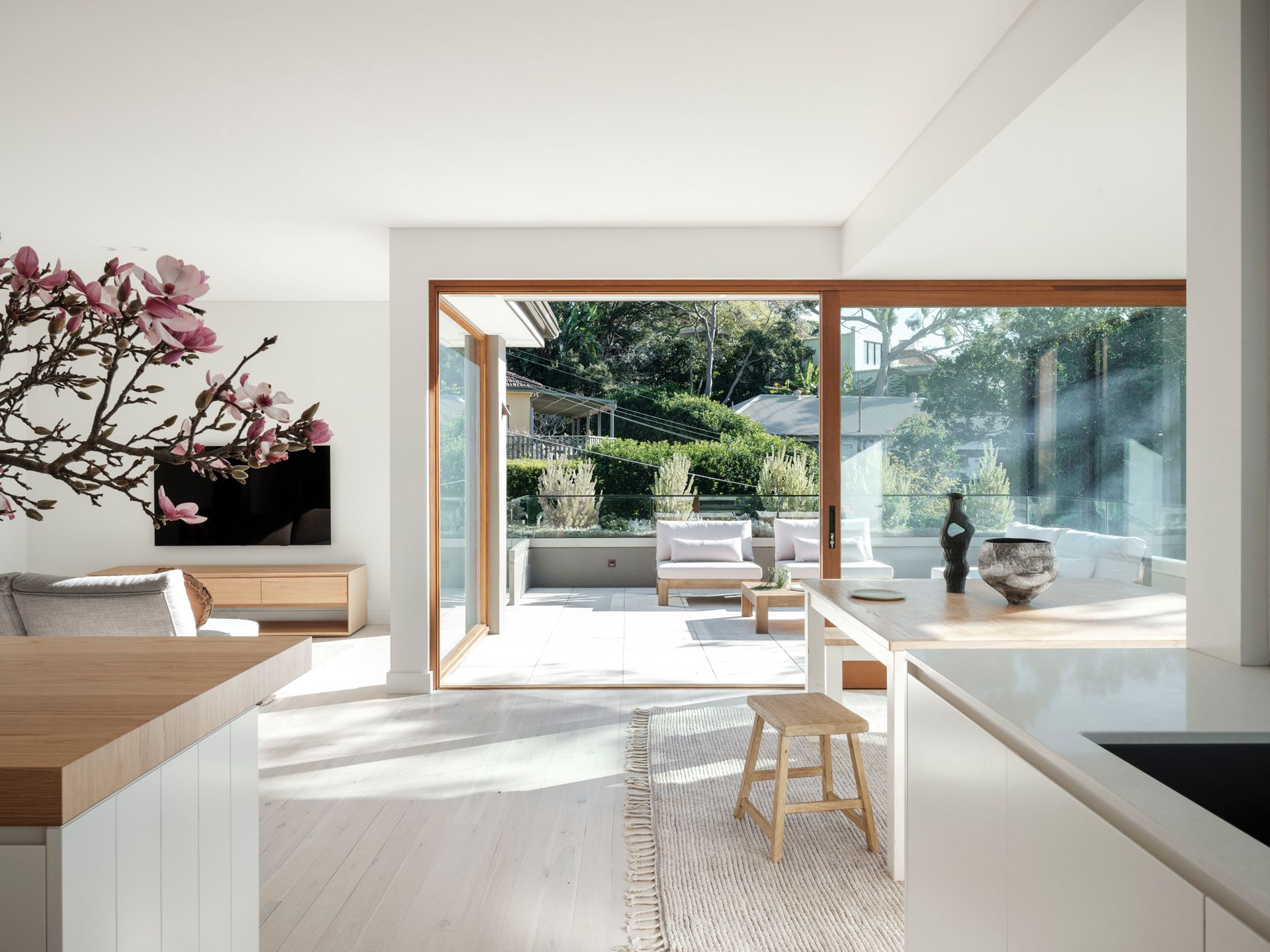 Modern open plan living transformation with warm timber finishes.
